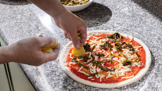 Pickled Cime di Rapa (Italian kale) and chipped potatoes already crown our new Pizza Trenta and can be combined as desired from now on!