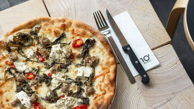 This pizza will probably be familiar to real dieci fans. The Pizza Salsiccia Bianca is not completely new to dieci, but the recipe and toppings have been changed slightly to make it even more delicious. The pizza without a tomato sauce is topped with mozzarella, salsiccia, rapini, ricotta, organic oregano and fresh peperoncini. And what flavours can dieci fans expect from this pizza? Rapini is an Italian turnip variety grown for the shoots and leaves. It adds fantastic flavour and freshness, while the peperoncini add bit of spice – just the way we like it.
